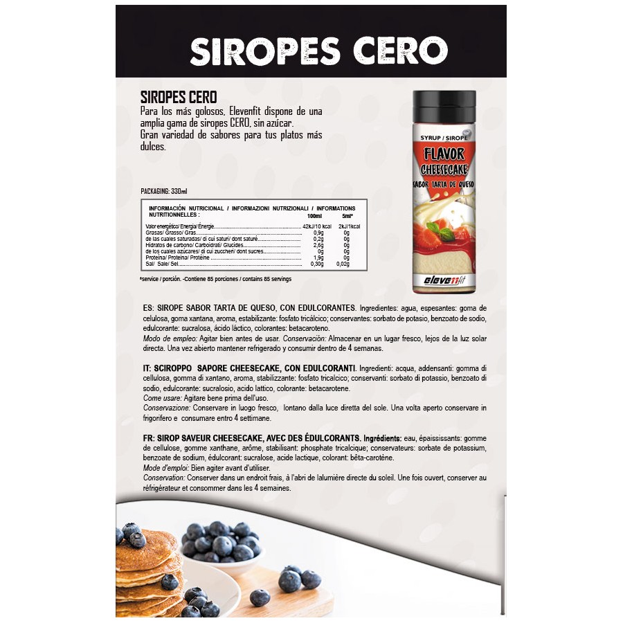 🎯 Si buscas un sirope de tarta de queso delicioso, bajo en calorías y sin azúcar añadido, Elevenfit tiene lo que necesitas. ¡Haz tu pedido y transforma tus postres en una experiencia saludable!