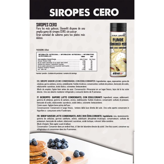 IlSciroppi ElevenFitsono una linea dideliziose salse dolci,privo di calorie, grassi e zuccherie disponibile in una gamma di15 gusti squisiti.